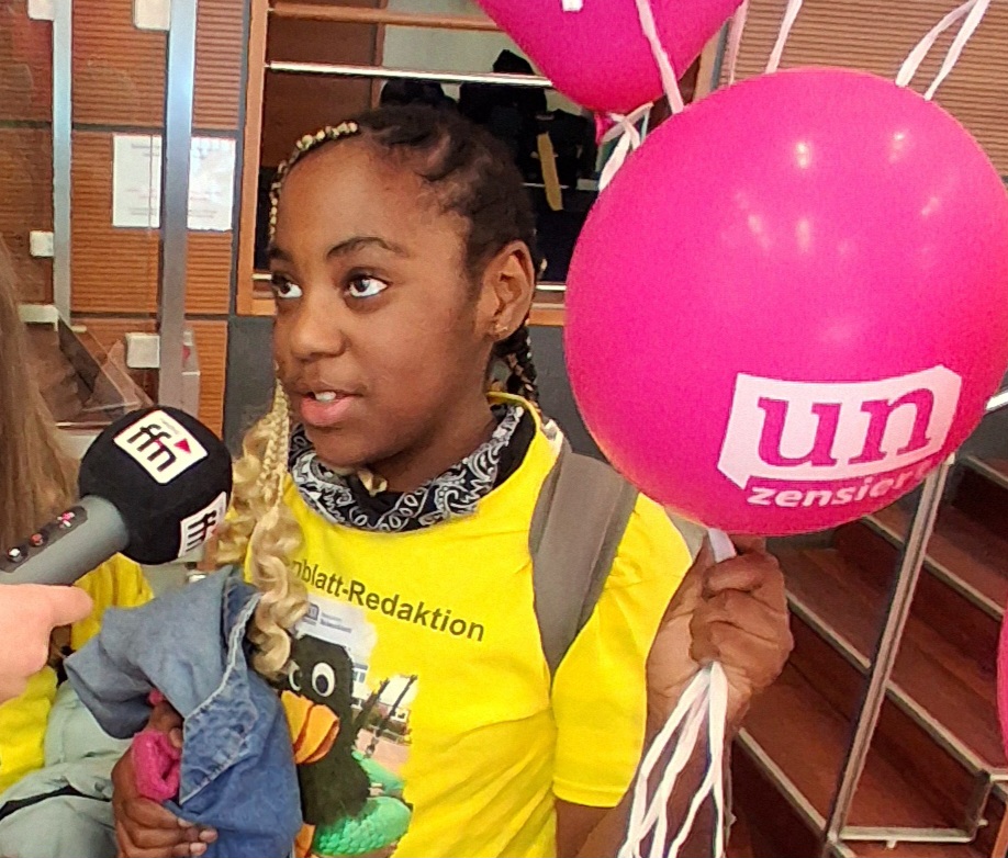 Der Moment der Preisverleihung war sehr spannend. Unsere drei Redakteurinnen wurden auf die große Bühne gerufen, mit Applaus gefeiert und bekamen eine Urkunde, einen 100-Euro-Scheck und einen Gutschein für einen Zoobesuch mit allen Rabenblatt-Kindern überreicht.