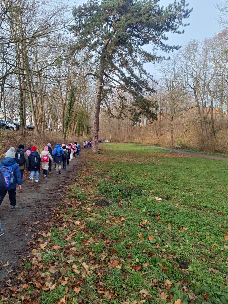 Nach einer Stunde trat die ganze Schule zu Fuß den Rückweg an. Einige erschöpfte Füßen später erreichten wir die Grundschule wieder.