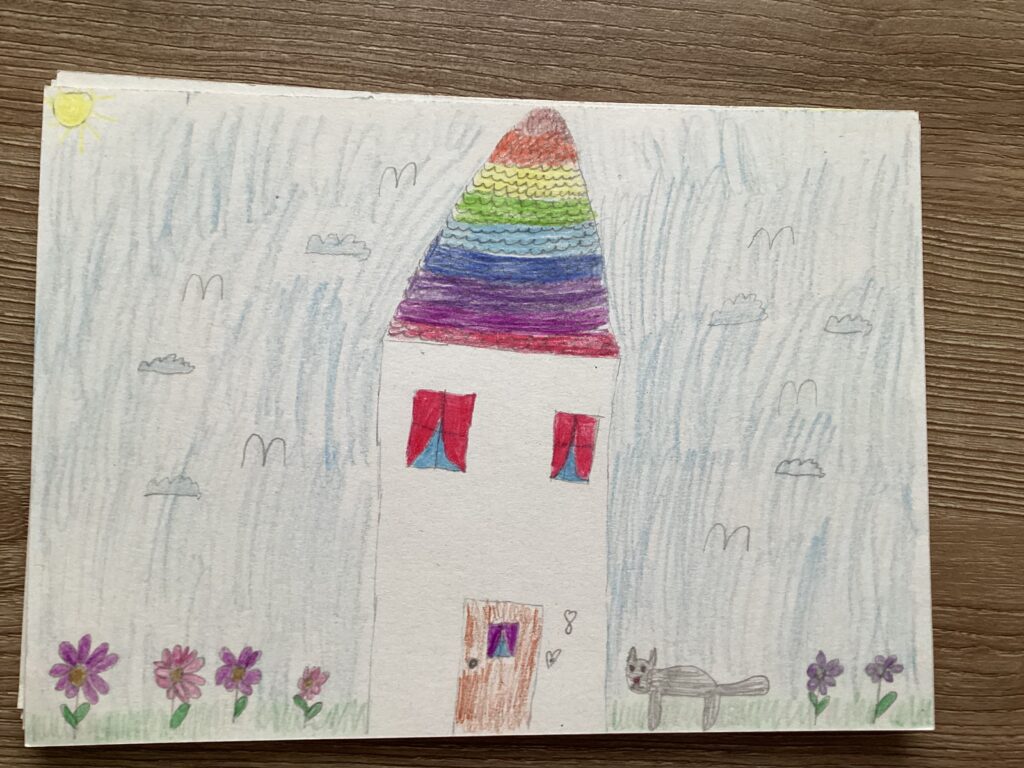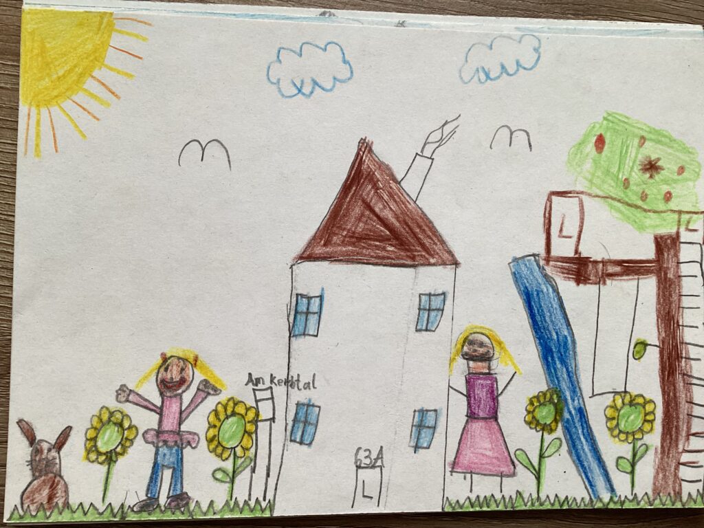 Die Klasse 2c durfte im Kunstunterricht nach folgenden Aufträgen ein Bild gestalten: Male ein Gebäude, Pflanzen, Menschen oder Tiere und etwas, was du gut zeichnen kannst.
