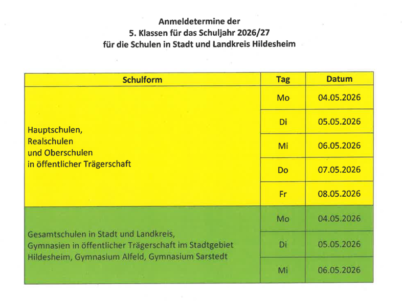 WICHTIGE TERMINE ZUR ANMELDUNG AN DEN WEITERFÜHRENDEN SCHULEN zum Schuljahr 2026/27